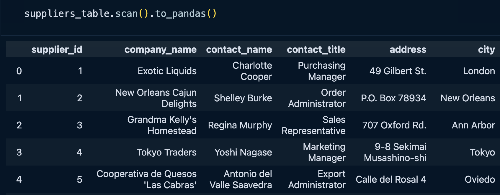 Once our warehouse is created, let's define a namespace, create some table and load some data into those tables. Note that these tables are iceberg tables whose data is stored in S3 compatible storage (Minio). This notebook defines, creates, and loads data into customers, employees, and suppliers iceberg tables. The csv files of these data are present in data folder.